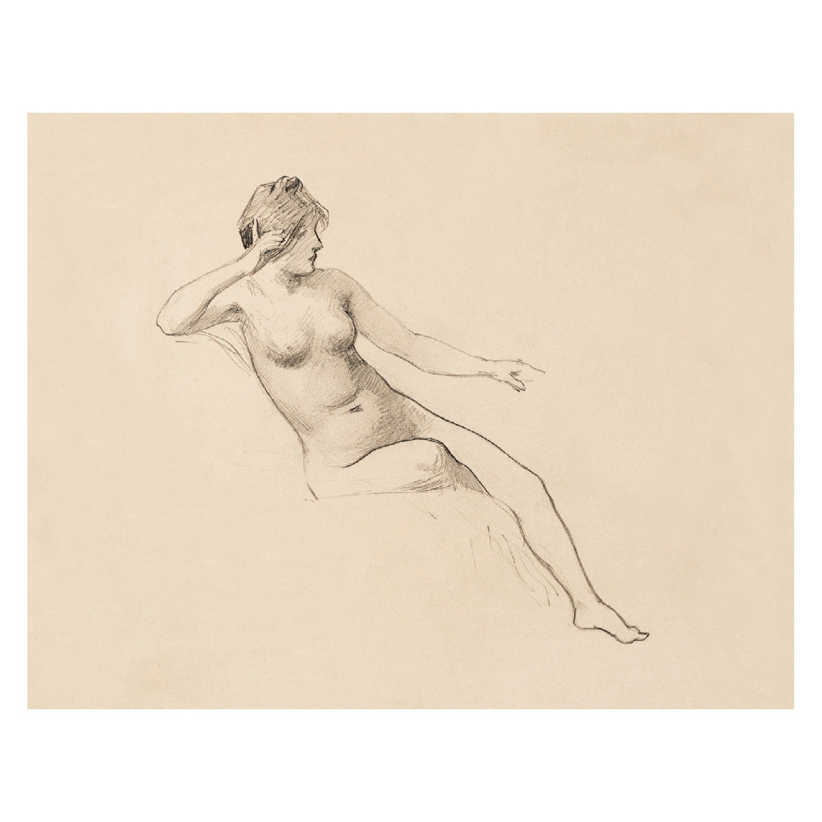 Decorative "Seated Female Nude (1890)" by James Wells Champney Poster | High-Quality Print | Repositionable Adhesive