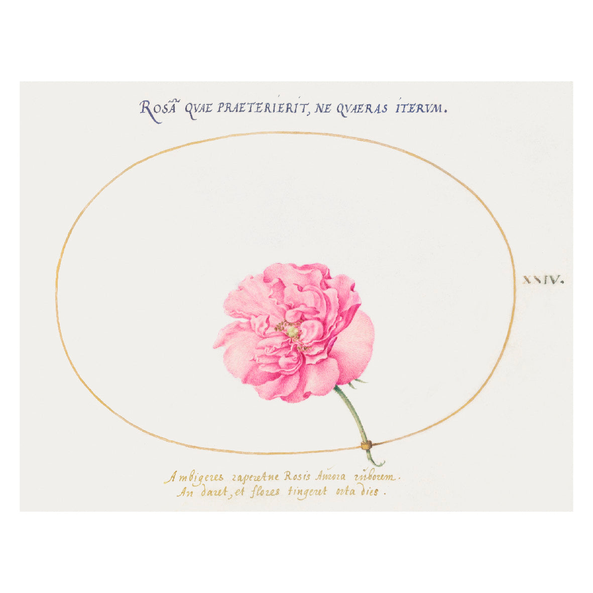 Decorative "Pink Rose (1580)" by Joris Hoefnagel Poster | High-Quality Print | Repositionable Adhesive